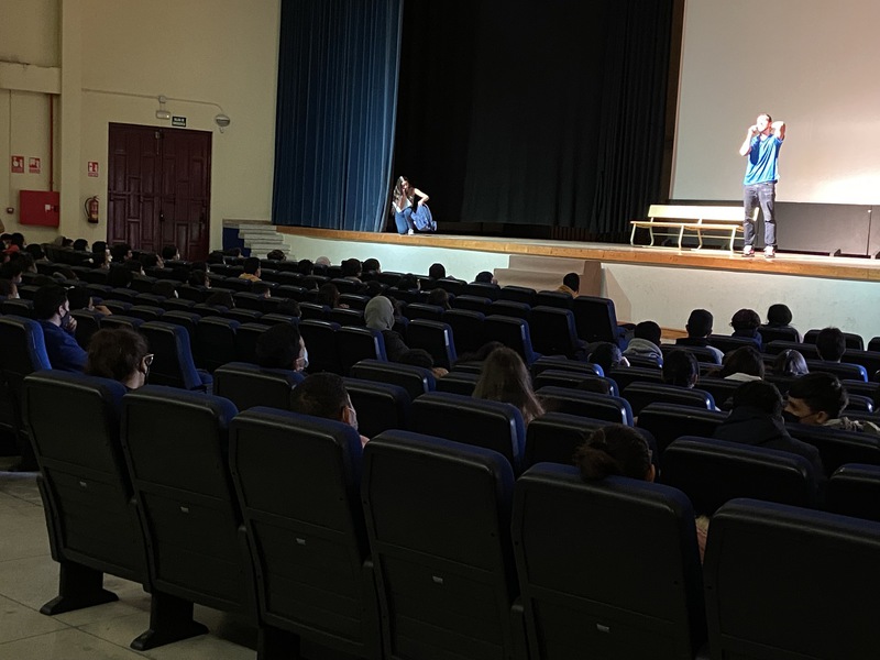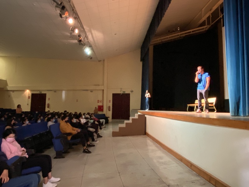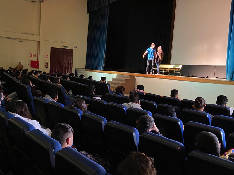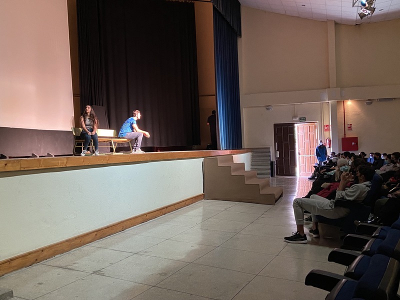 Junto al alumnado de 3º de ESO, hemos podido disfrutar de “Lunáticas” en el Salón de Actos del instituto.