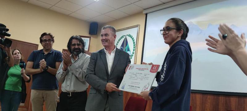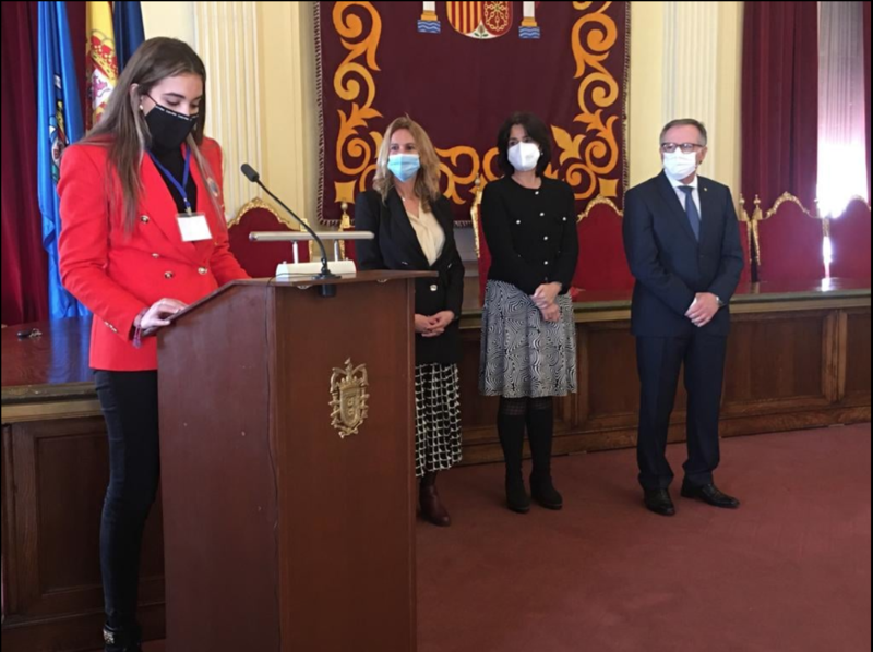Al acto de entrega del premio, estuvieron presentes los representantes de la fundación Coca-Cola, Yolanda Vigo Lobera y Juan Francisco Aragón, el Director Provincial del MEFP Juan Ángel Berbel, el Director del Instituto José Manuel Rodríguez García y por Raquel Castillo, profesora de extraescolares en el instituto y profesora de literatura de la joven ganadora.