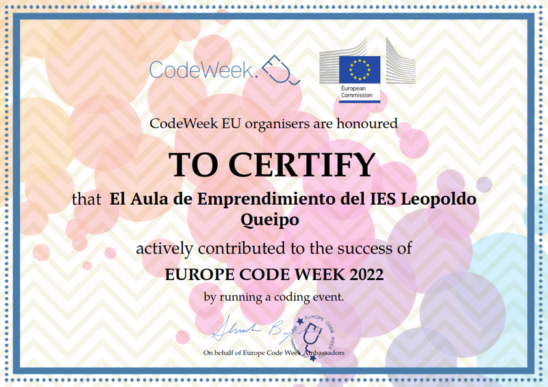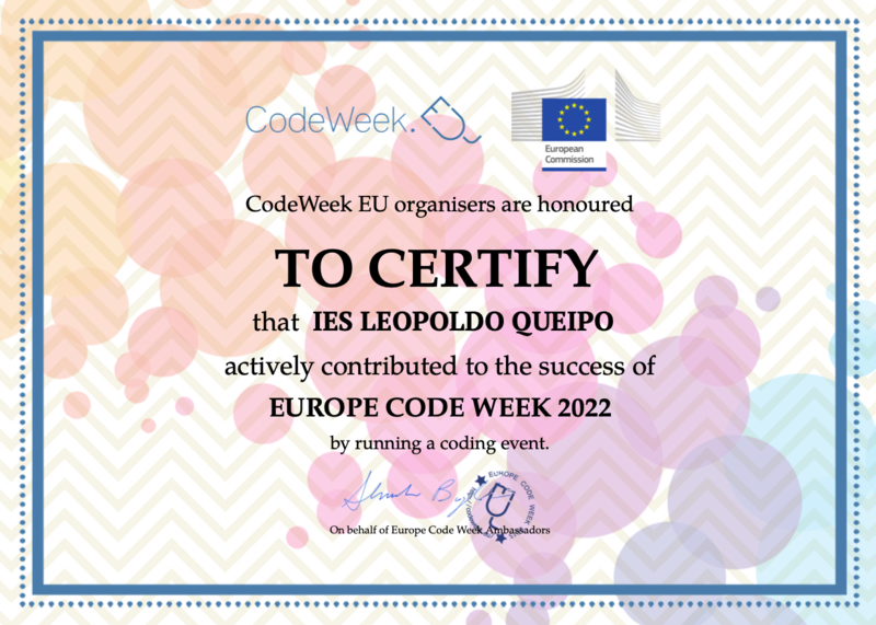 Los alumnos de la Familia Profesional de Informática y Comunicaciones, de Grado Medio en "Sistemas Microinformáticos y Redes", y de Grado Superior a distancia en "Desarrollo de Aplicaciones Web", participan en la Codeweek 2022 con las siguientes actividades presencial y en línea respectivamente:
