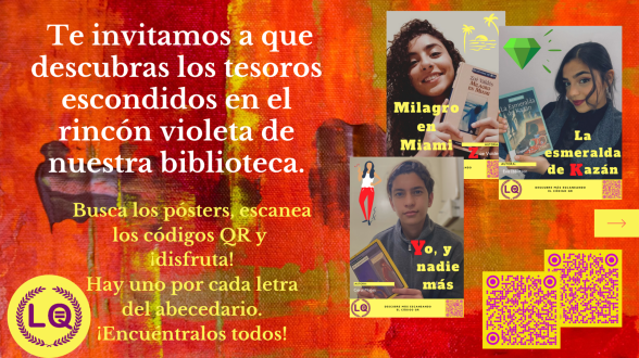 Nuestra intención es dar difusión a algunos de los libros que tenemos en el rincón violeta de la biblioteca. En la entrada del instituto hay expuestos veintisiete carteles protagonizados por parte de nuestro alumnado. Cada uno de ellos promociona uno de nuestros libros. Podéis encontrar más información AQUÍ