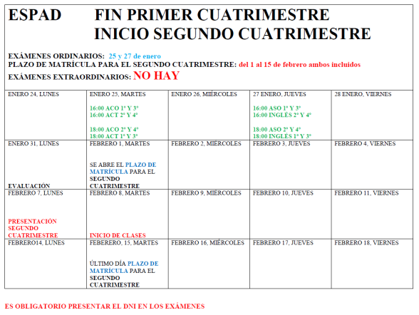 ¡ATENCIÓN NUEVO CALENDARIO! Descargue, en el enlace de abajo, la siguiente información de interés para el alumnado de ESPAD: