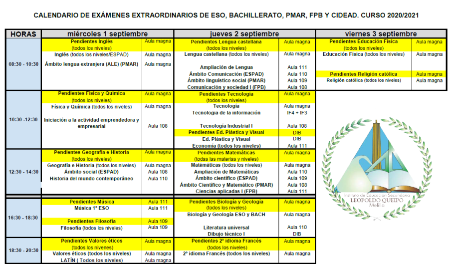 Los cursos de bachillerato tras la presentación y recogido el horario se incorporarán a sus clases.