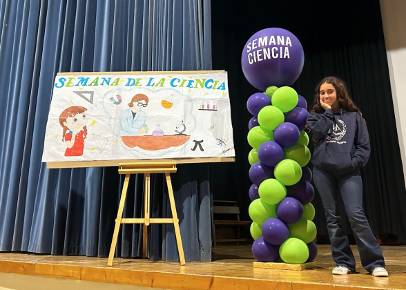 En el IES Leopoldo Queipo tenemos alumnos comprometidos e implicados con las actividades que realizamos. Hoy nos toca agradecer a nuestra alumna María Bernabé de 3E_B su contribución a la Semana de la Ciencia con la elaboración de este magnífico mural que presidía el salón de actos en las bienvenidas de los CEIPs. ¡Eres una artista!