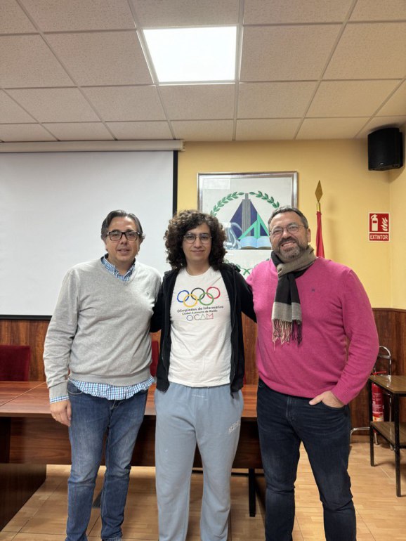 Iván Santos Taa, estudiante de segundo curso de Sistemas Microinformáticos y Redes y ganador de la Olimpiada Informática de la Comunidad Autónoma de Melilla (OICAM), participó recientemente en la Olimpiada Informática Española (OIE), acompañado por su profesor Francisco Alés, quien también actuó como organizador de las olimpiadas regionales.