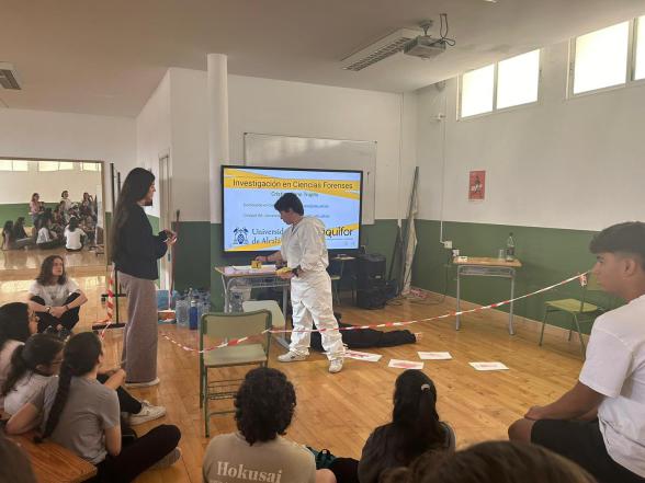 El miércoles día 8 de mayo nuestro alumnado de 4E_A y 1B_A, en el IES Leopoldo Queipo, asistieron a un taller CSI y una charla de orientación profesional, organizadas por el Departamento de Ciencias Naturales y el Departamento de Orientación. El taller y la charla realizadas por Doña. Cristina Pilar Cano Trujillo, Graduada en Biología Sanitaria y Doctorada en Ciencias Forenses y por Doña Lucía María Acero Riaguas, Graduada en Biología Sanitaria, y Máster en Bioquímica, Biología Molecular y Biomedicina, ha sido de gran interés para nuestro alumnado, y los ha acercado a la investigación, a la práctica profesional y a conocer diferentes opciones formativas y profesionales. Agradecemos a nuestra compañera del IES Miguel Fernández, Carolina Ayala, por contar con nosotros en esta actividad intercentros.