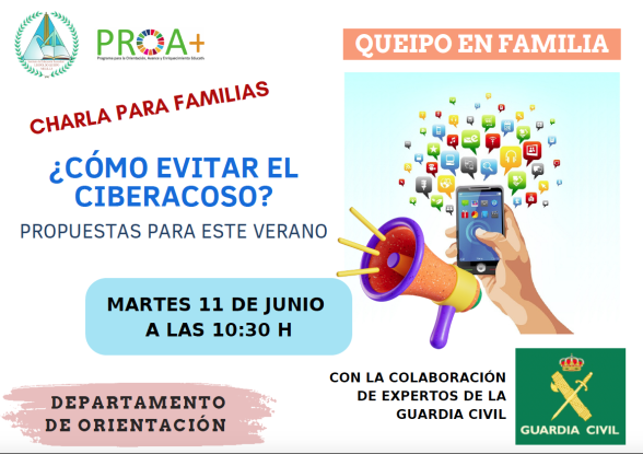 El próximo martes 11 de junio a las 10:30 h será la última charla para familias y contaremos con la colaboración de expertos de la Guardia Civil.